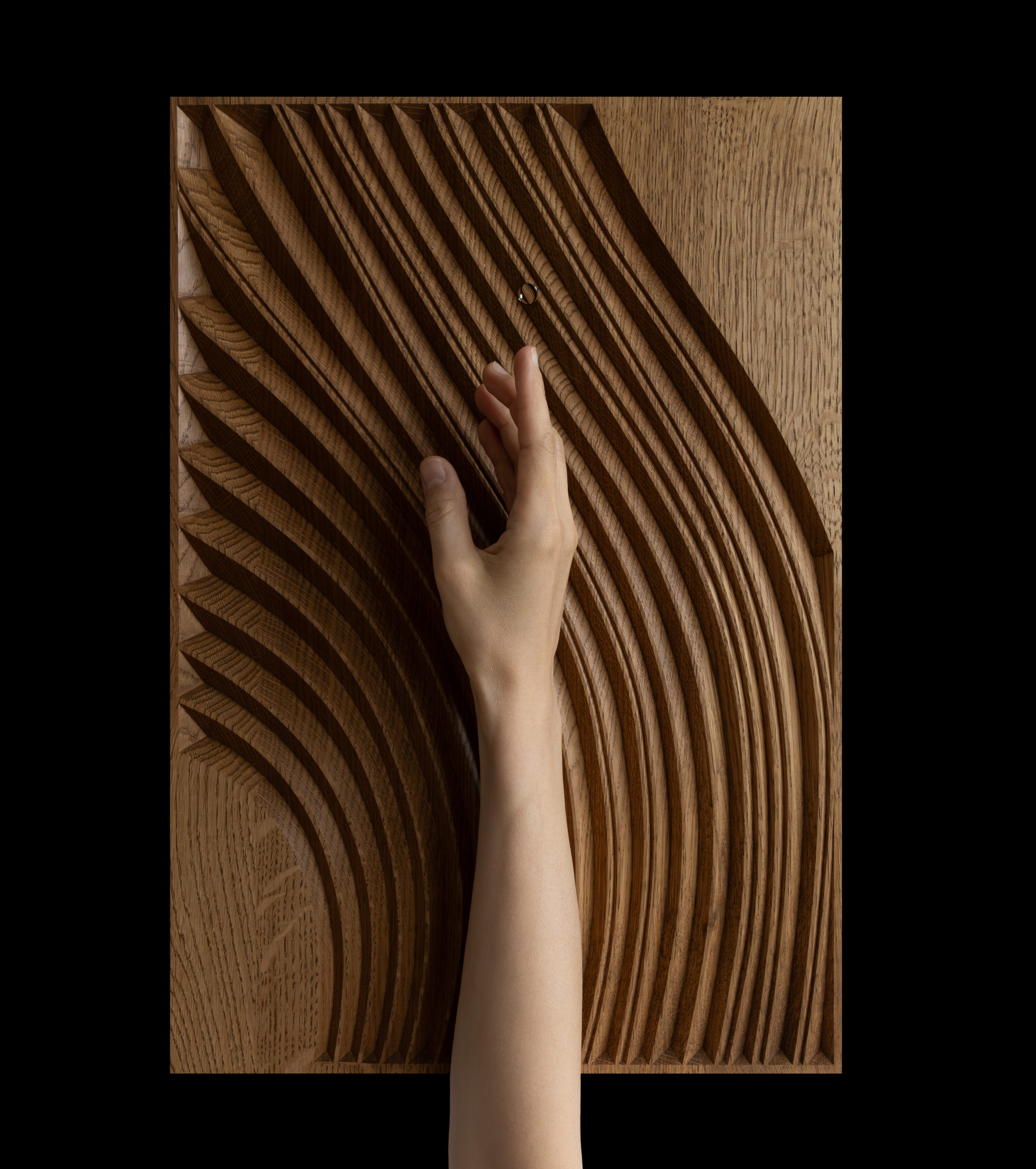 Każdy drewniany panel wyposażony jest z tyłu w dwie pary metalowych zawieszek, które umożliwiają jego zawieszenie w pionie lub poziomie.